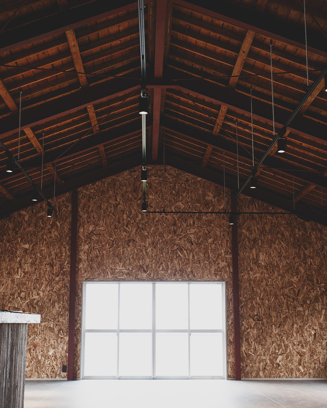 構造を活かした天井のデザインと、OSBの素材感が映える仕上がりに。