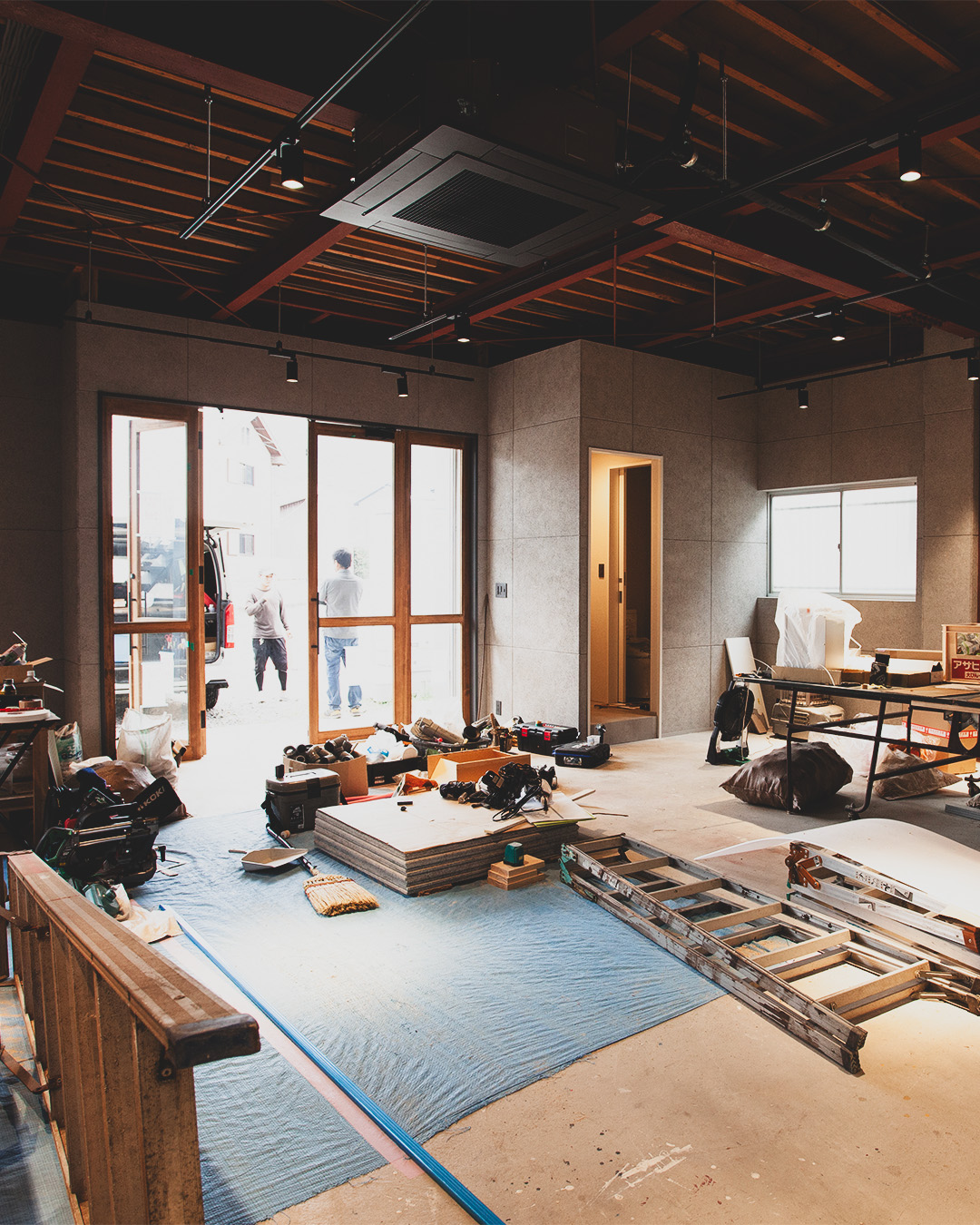 形が見えてきた空間に、照明や建具が加わり少しずつ完成の姿に近づいています。