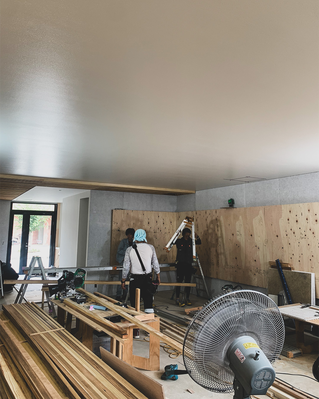 仕上げ工事はどんどんそのお店らしさ見えてくるため、ワクワクする工程。最後までしっかりと進めていきます。