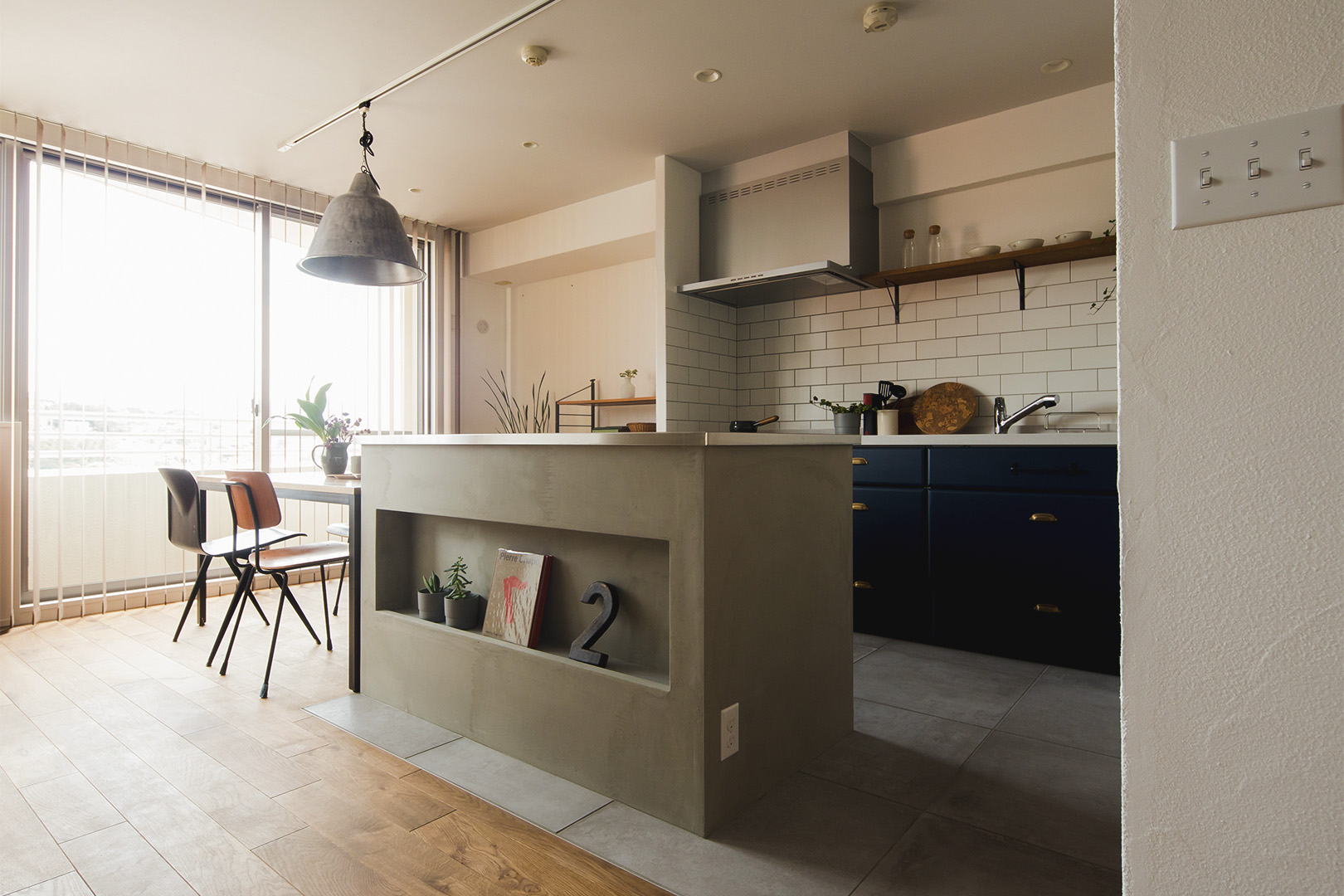 ところで、空間の挿し色として際立つ青は、今回のテーマ色だった。各部屋の扉やキッチン収納、ウォークインクローゼットなど要所に青を配すことにより、空間に適度な引き締め効果が現れている。「自由度という点でリノベーションを選んで良かった」。と、伸びやかに語る旦那様。その横顔を笑顔で見つめる奥様の表情から、夫婦の絆と明るい未来を想像せずにはいられなかった。