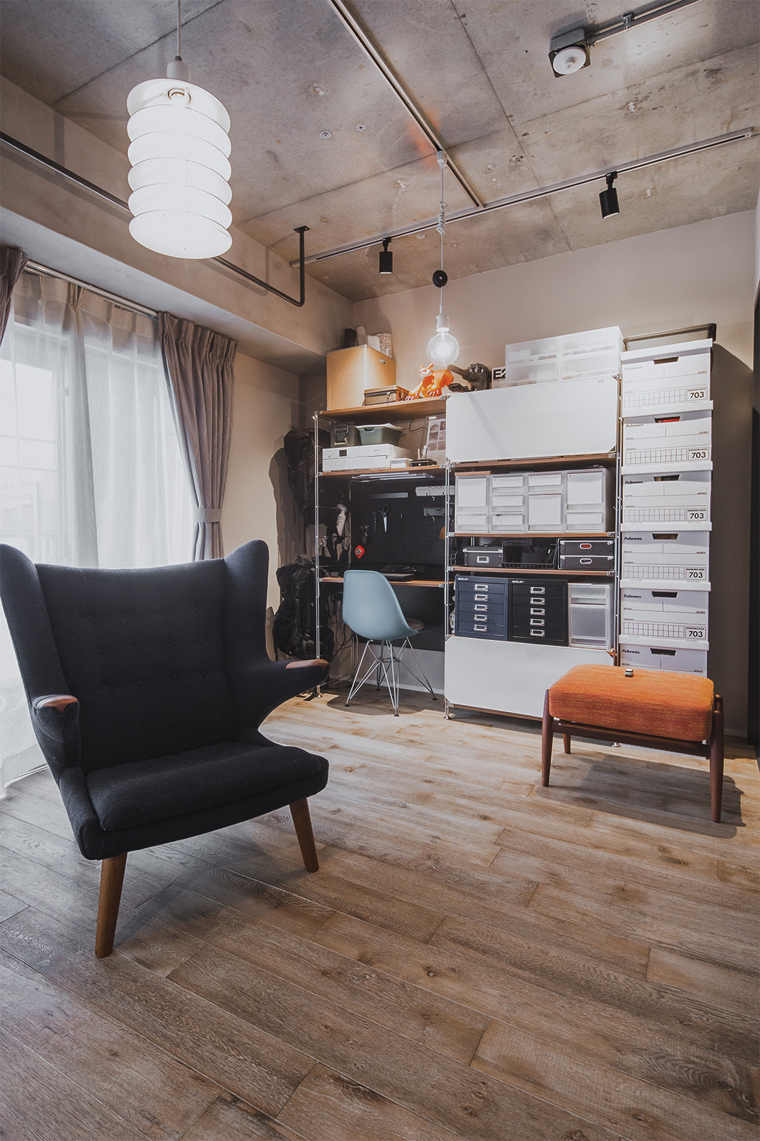 リビングには旦那様のワークスペース、キッチンには奥様のワークスペースを設置。デザインとユーザビリティの両方を実現したリノベーション空間に仕上がりました。