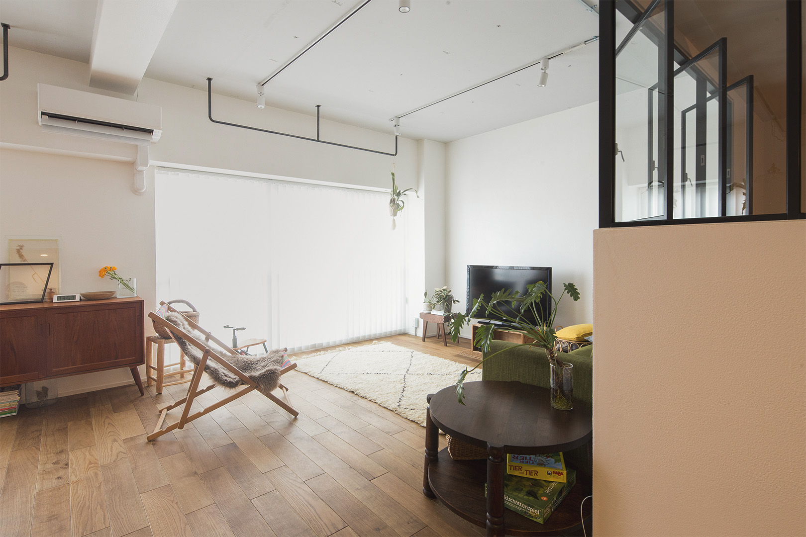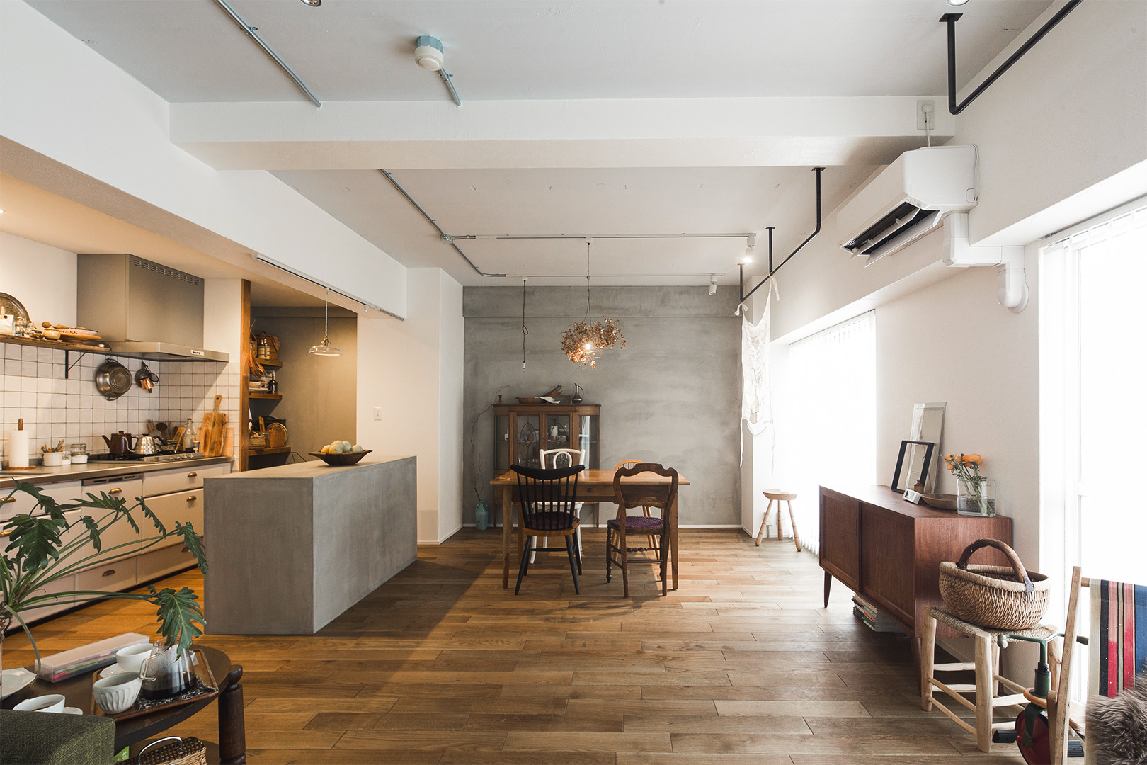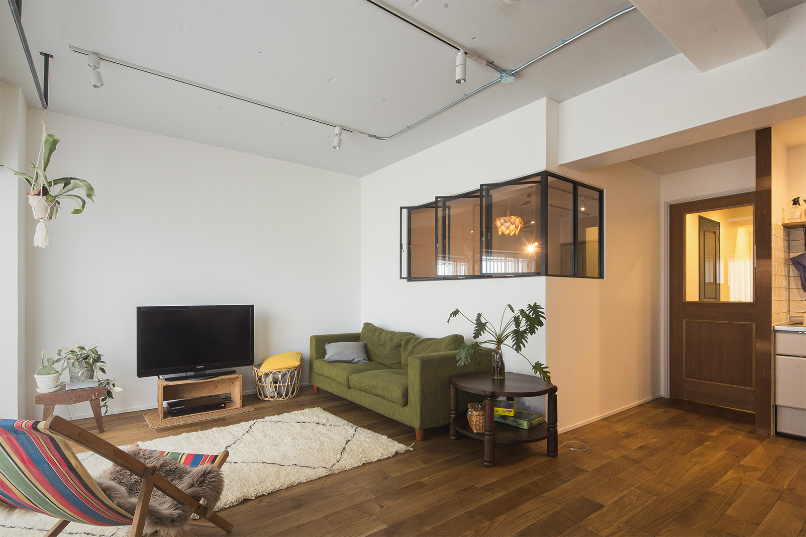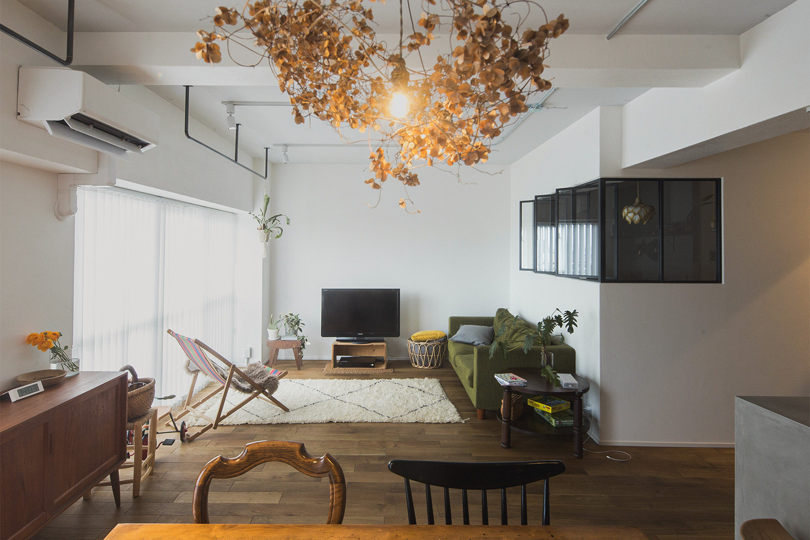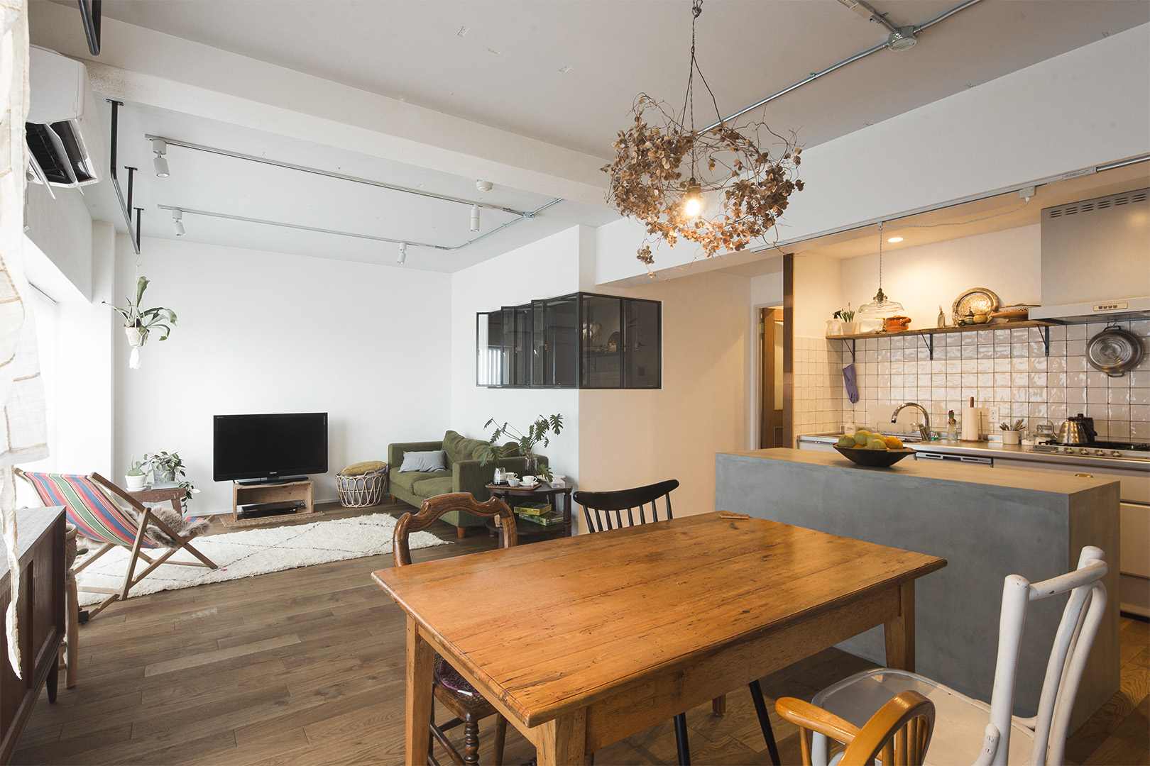 福岡市東区、遮るもののない眺望のマンションの1室をご購入されたN様。築5年と築浅ながら、キッチン周りの使い勝手改善やバルコニーからの眺望を最大限に活かす家にしたいという要望があり、Webからご相談いただきました。
