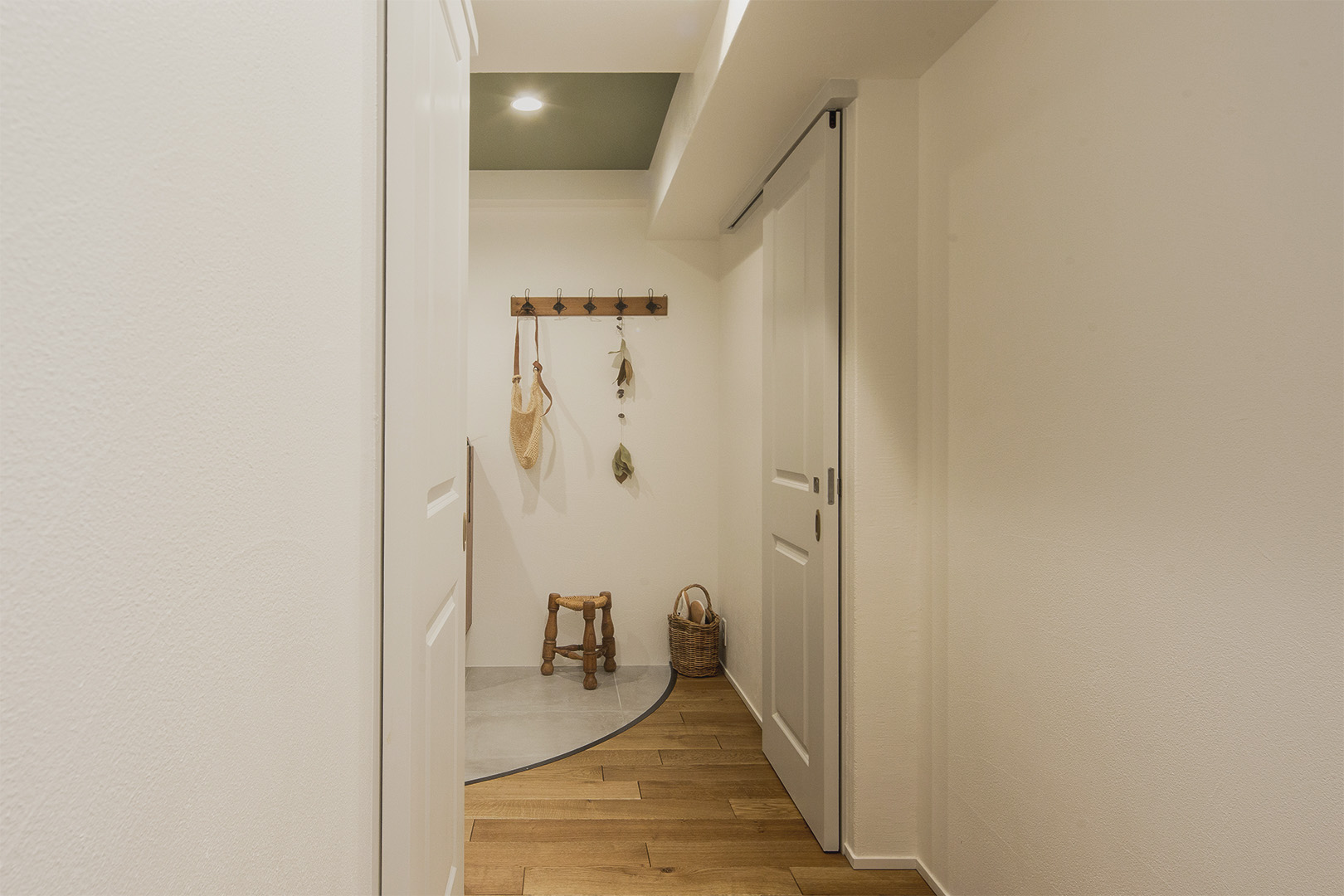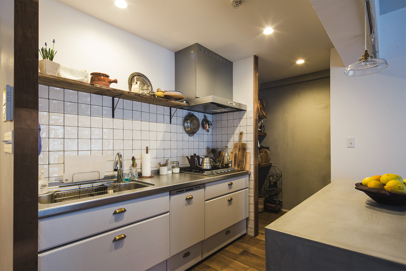弊社の施工事例をご覧になられていたN様。当初からのご希望だったモルタル壁やタイル壁のデザインがポイントとなり、シンプルで洗練された空間に仕上がりました。