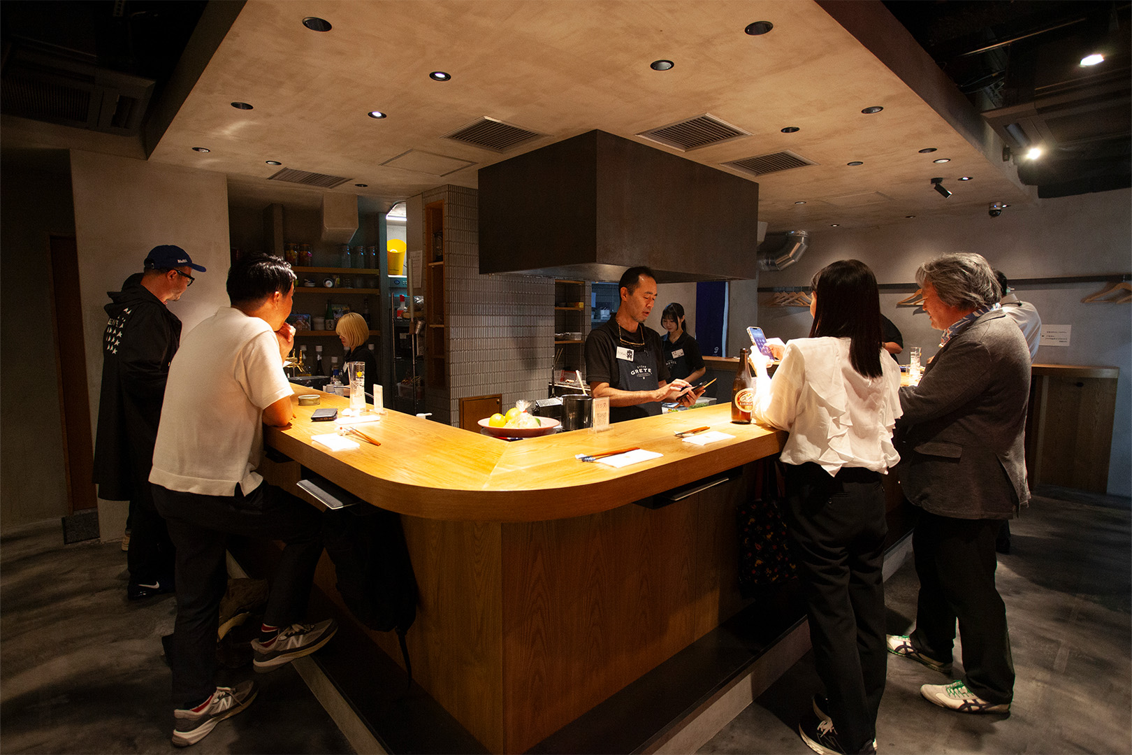 限られた15坪ほどの空間の中で意識したのは、立ち飲みならではの「距離感」と「居心地」。