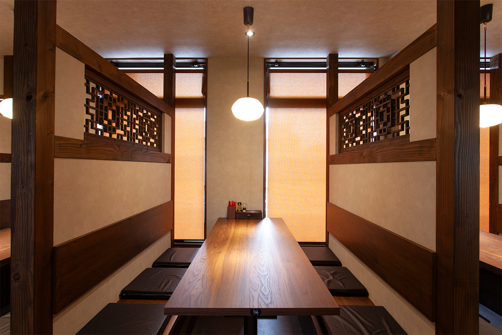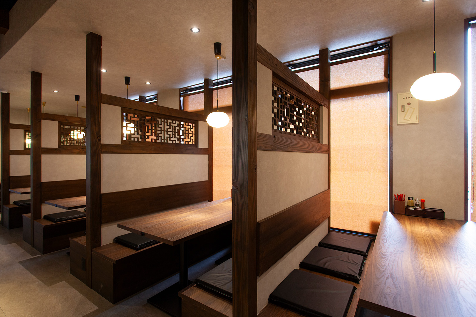 以前の店舗は、4名掛けテーブルが中心で、4名以上での来店に対応しづらく、配膳動線にもやや無理がありました。今回のリニューアルでは、最大6名まで対応できるボックス席を設け、グループ利用にも対応しやすい構成へ。