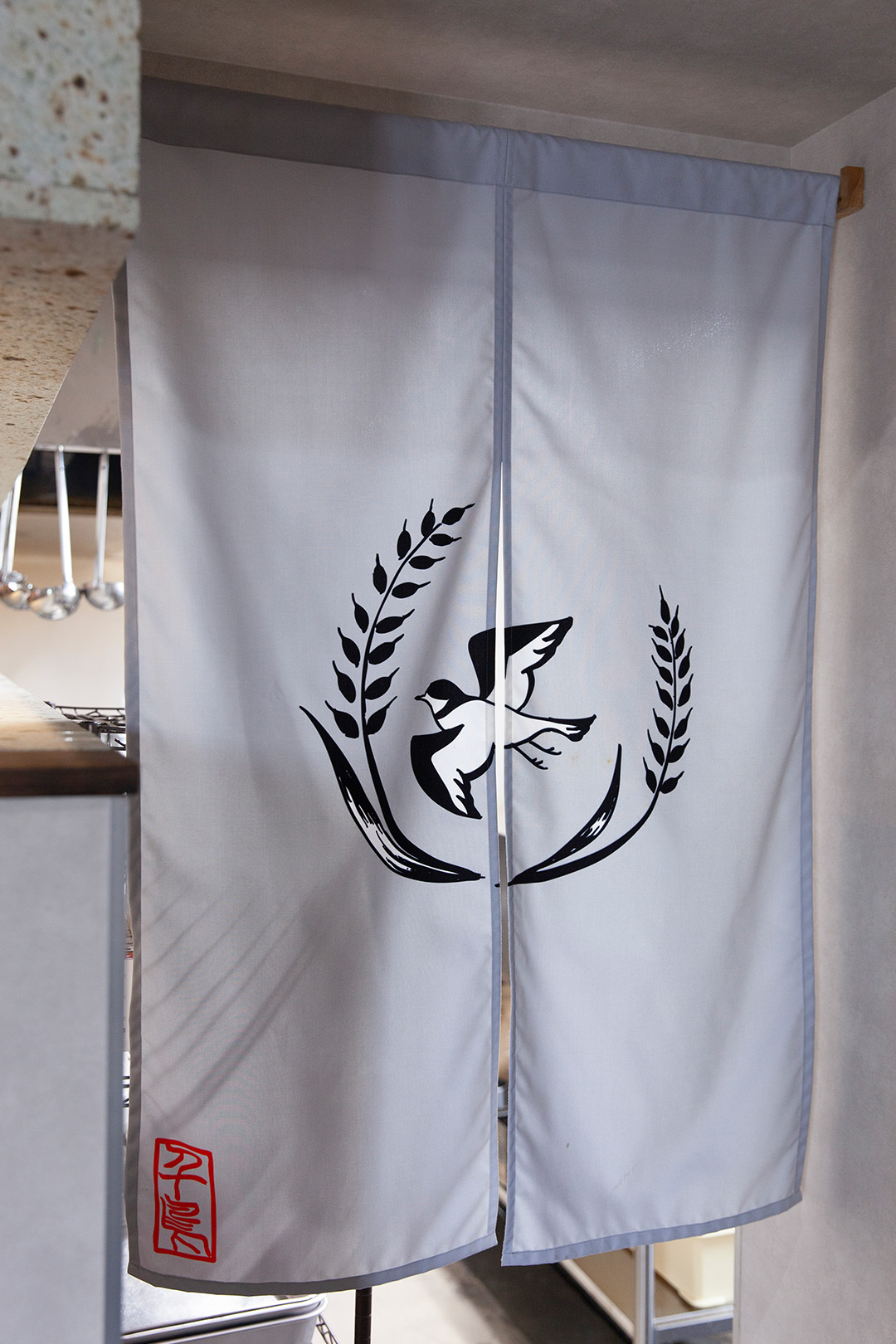 「ちどり」という店名とロゴは、店主の奥様がデザインされたもの。鳥をモチーフにしたロゴは、暖簾やサインにも反映し、お店の“顔”として空間に溶け込ませました。